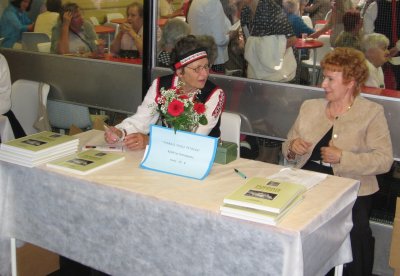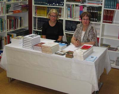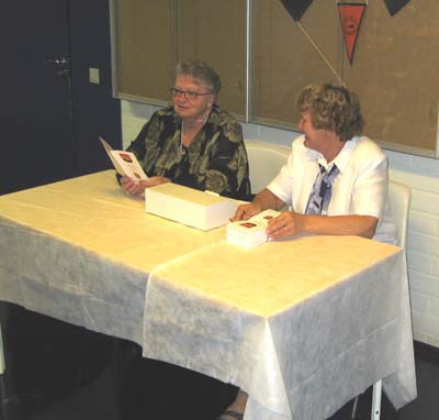 | Lämmin päivä tuntui myös sisällä. | Punnuksen kirjaa myivät Irma Uotila Ja Raili Nordblad. |