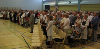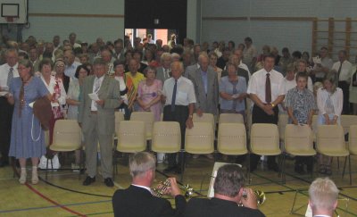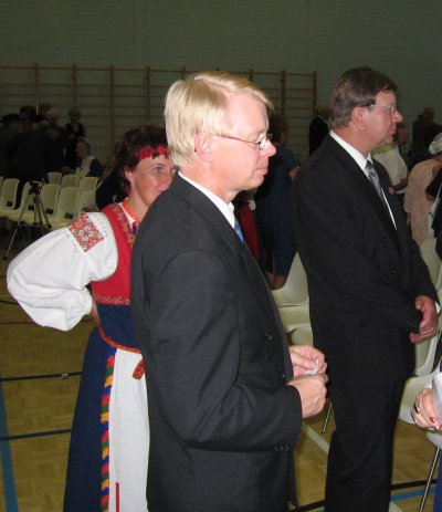 | Juhlan yleisöä. | Narvan soittokunta Yrjö Punkarin johdolla vastasi puhallinmusiikista. |