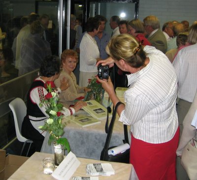 | Väkeä oli juhlassa välillä ihan tungokseen asti | Muolaa-aineistoa myivät Päivi Pyykkö ja Tuula Viholainen. |