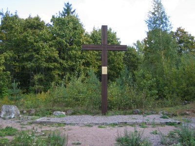 | Kuusaan hovi on kaukana entisestä loistostaan. | Muolaan tuhoutuneen kirkon alttarin paikalla oleva risti. |
