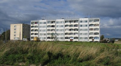 | Venäläisiä pientaloja kyläkeskuksessa. | Keskustan kerrostaloja Punnuksessa. |