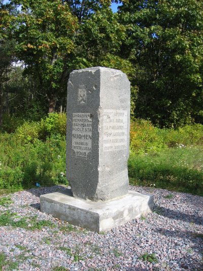 | Vuoksen rantaa Äyräpään kirkolla | Vapaussodan muistomerkki Muolaan hautausmaalla. |